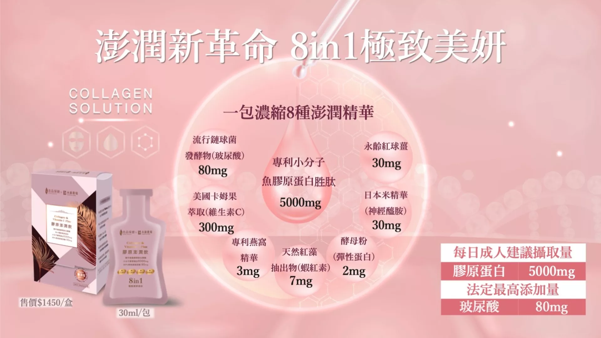- 酸甜莓果風味:無腥味,好入口,讓您輕鬆享受奢華保養